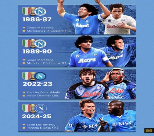 2024-25赛季:麦克托米奈(MVP)、卢卡库(14球)