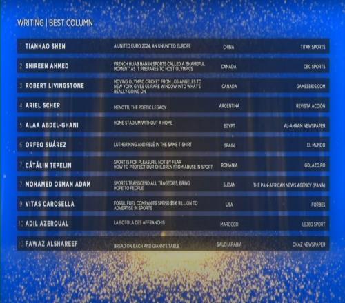 中国人首次!记者沈天浩获国际体育记者协会2024文字类最佳专栏奖