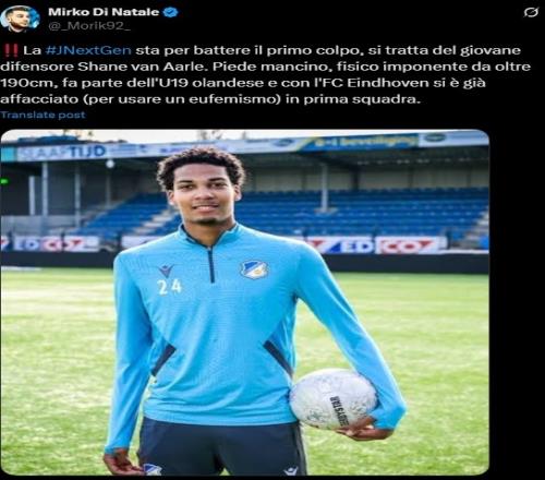 记者表示:“尤文青年队即将完成首笔签约,18岁的年轻后卫谢恩-范阿尔勒将加入球队。这位左脚将拥有超过190cm的魁梧体格,是现役荷兰U19国脚,在埃因霍温FC(注:不是荷甲的埃因霍温,是荷乙的埃因霍温FC)已获得一线队出场机会。”