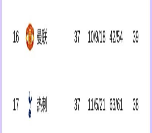 两队在本赛季在英超联赛中表现都极差,曼联37轮39分排在英超第16,热刺37轮38分排在英超第17。