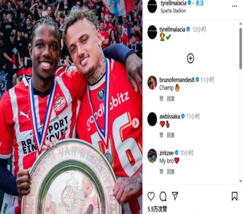 马拉西亚社媒庆祝埃因霍温赢得荷甲,B费、齐尔克泽留言祝贺