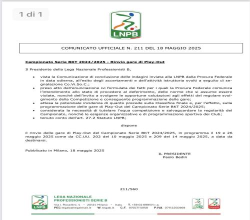 体育资讯05月18日报道宣称 意乙联赛发布官方公告,由于发生会改变联赛排名的扣分情况,原定于5月19日举行的意乙保级附加赛延期举行。据多家媒体报道,布雷西亚由于财政违规,将被扣除4分,降入意丙。