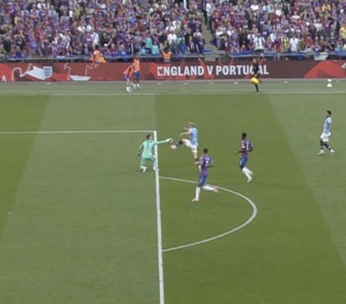 本场一大焦点场面,是迪恩-亨德森禁区外手球破坏哈兰德单刀机会,裁判未判罚。