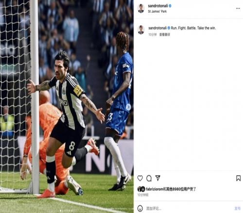 赛后,开场闪击的托纳利更新社交媒体写道:冲刺!搏杀!鏖战!夺胜!
