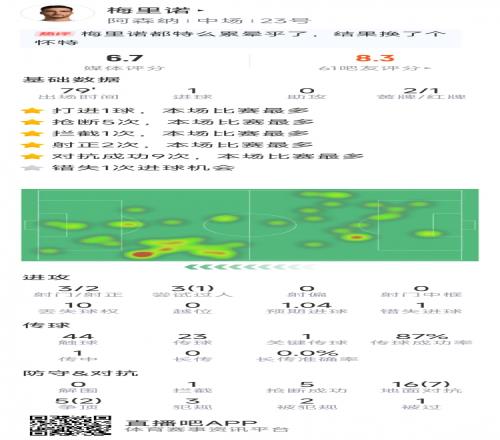 体育资讯5月12日报道宣称 在本轮英超利物浦2-2战平阿森纳的比赛中,梅里诺破门,但随后被红牌罚下,以下为他在本场数据: