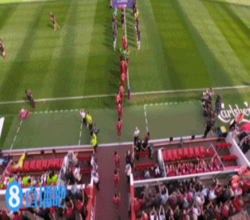 赛前,阿森纳列队欢迎利物浦入场。↓