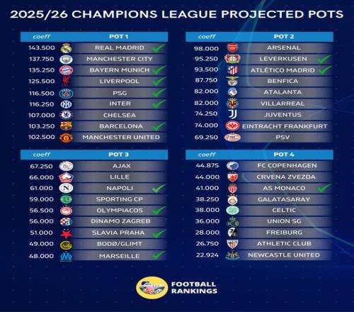 马竞、摩纳哥、马赛锁定欧冠资格,下赛季欧冠36强已确定13席