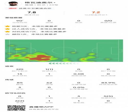 英超官方宣布,格瓦迪奥尔当选本场比赛最佳球员。
