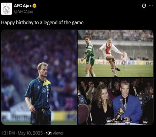 阿贾克斯官推写道:“祝一位足坛传奇生日快乐。”