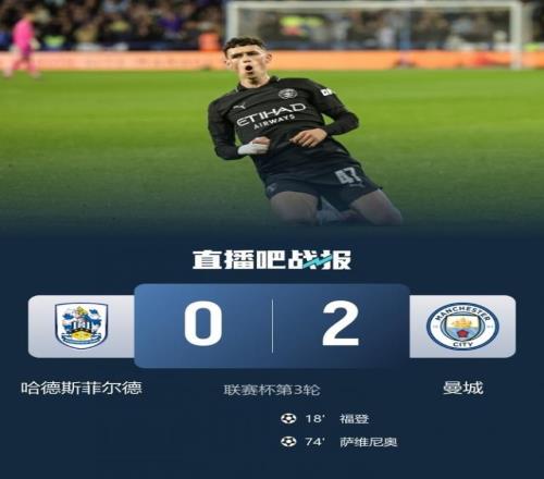 直播吧09月25日报道宣称 联赛杯第三轮,曼城2-0客胜英甲球队哈德斯菲尔德,福登传射建功,本赛季至今5场2球2助。