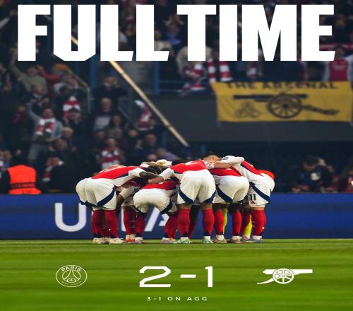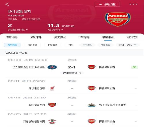 体育资讯05月08日报道宣称 欧冠半决赛阿森纳遭巴黎双杀后出局,球队本赛季四大皆空。