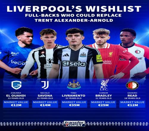 体育资讯5月7日报道宣称 阿诺德正式宣布今夏离队,德转列出五人作为利物浦右后卫的空缺的人选,其中包括亨克的瓦赫迪、尤文图斯的萨沃纳、纽卡的利夫拉门托、利物浦的布拉德利、费耶诺德的雷德。