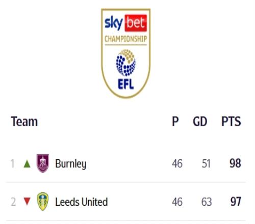 英冠末轮好戏!利兹联丢球,伯恩利实时积分98分反超登顶!