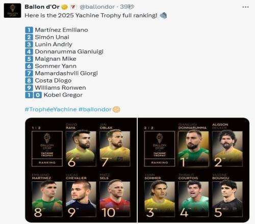 金球奖发布2025雅辛奖排名,配图是今年的,文案却是去年的