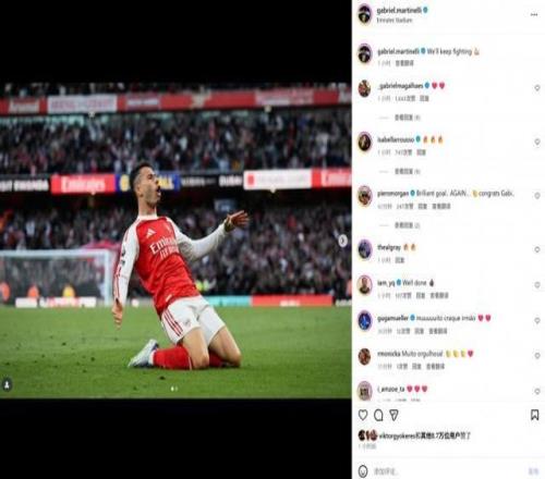 本场比赛马丁内利在替补登场后补时绝平,赛后他也在社媒晒出滑跪庆祝进球照片,配文写道:“我们i继续拼搏!”