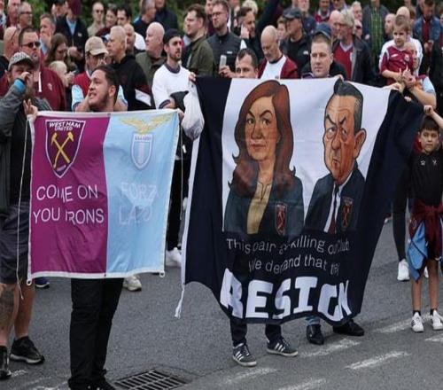 尽管西汉姆联已连续征战英超十三个赛季并在2023年获得欧协联冠军,但球迷对自2016年迁离厄普顿球场后的发展停滞表示不满。抗议横幅出现“十五年毁灭俱乐部”标语,现任老板苏利文和副主席布雷迪自2010年起执掌西汉姆联。
