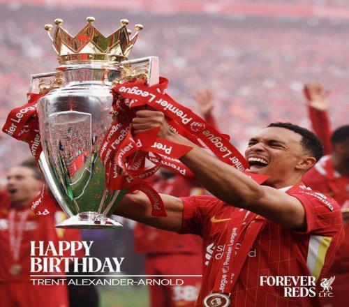 英格兰右后卫亚历山大-阿诺德迎来27岁生日,利物浦官方社媒发布祝福,祝福曾效力球队11年之久的青训得意门徒生日快乐。 阿诺德于今夏告别利物浦,加盟皇家马德里,为球队留下1000万欧元的买断款项。虽背负犹大骂名,但阿诺德和利物浦之间依旧保持友好关系,可谓散买卖不散交情。