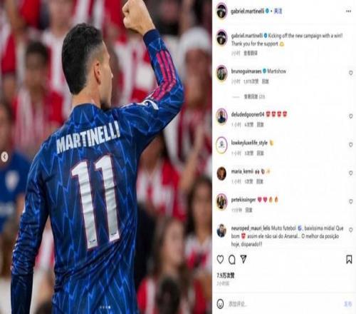 替补传射!马丁内利社媒:以一场胜利开启新征程,感谢球迷支持