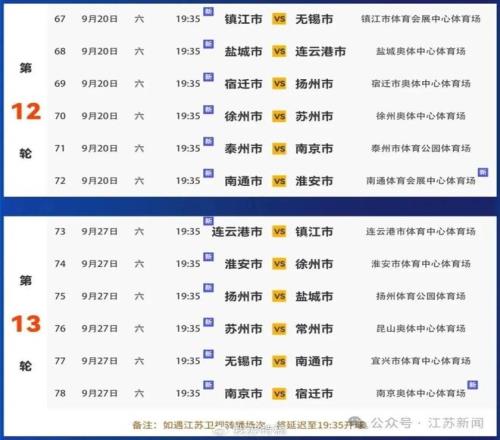 目前,“苏超”已进行到第十一轮,淘汰赛八强席位的争夺进入白热化。有很多观众注意到,“苏超”第十二轮、第十三轮将分别于9月20日、9月27日同一时间开赛,大家直呼“眼睛看不过来”。