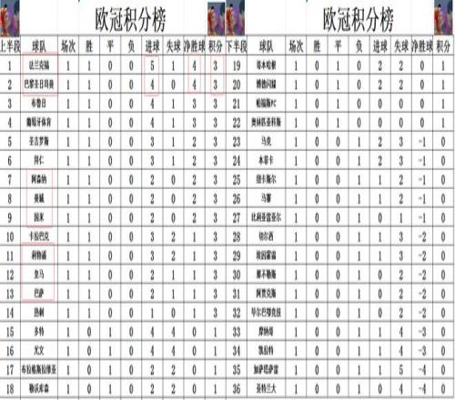 欧冠最新积分战报法兰克登顶曼联旧将2球西甲对英超仅巴萨赢球