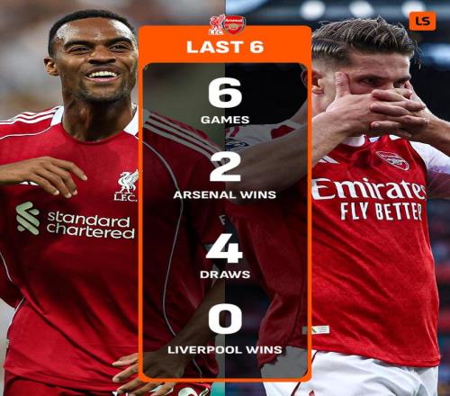 数据显示,双方近6次交锋,阿森纳取得2胜4平的战绩。也就是说,利物浦近6次与阿森纳的交锋中,未尝胜绩。