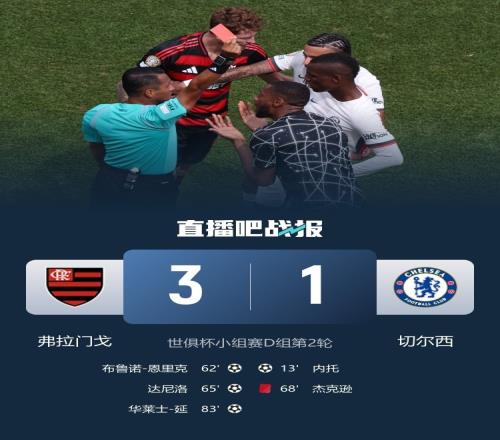 切尔西在世俱杯D组第二轮1-3输给弗拉门戈,是自2000年1月8日曼联以1-3不敌瓦斯科达伽马以来,首支在国际足联赛事中以两球差距败给其他大洲球队的欧洲俱乐部。
