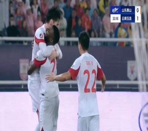 第33分钟,云南玉昆再次打出精彩反击,奥斯卡戏耍洛佩斯,将球送到后点,侯永永头球破门,0:1!山东泰山占尽优势的情况下,意外落后了。