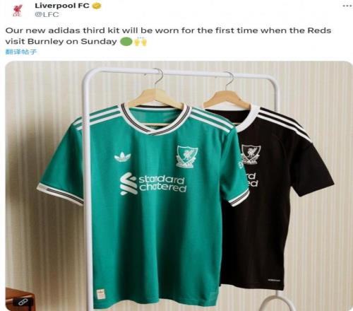 直播吧9月9日报道宣称 利物浦官方消息,球队将在本周日客场对阵伯恩利的比赛中,首次身披绿色的第二客场球衣。