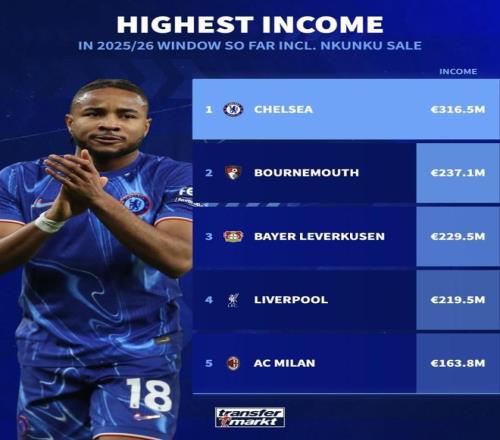 近日,德转公布了2025/26赛季夏季转会窗的卖人收入榜,切尔西以 3.165亿欧元 高居榜首,力压伯恩茅斯、勒沃库森、利物浦和AC米兰。与此同时,球队球员出售明细也随之曝光,从马杜埃凯到恩昆库,再到菲利克斯、佩特洛维奇,几乎覆盖了主力与潜力股,引发外界热议:这究竟是一次高效的“财务回血”,还是新一轮动荡的开始?