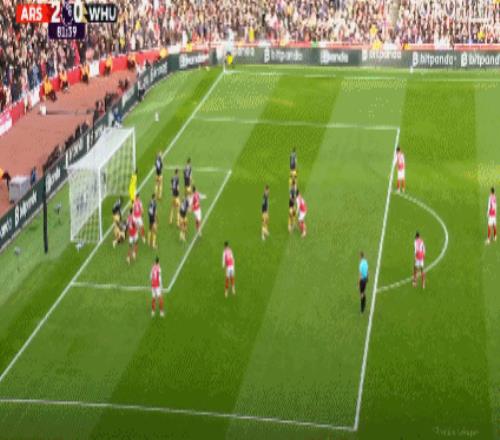 第38分钟,赖斯禁区内推射破旧主,随后选择不庆祝,阿森纳1-0西汉姆联