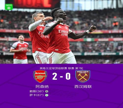 北京时间10月4日,英格兰足球超级联赛第7轮,阿森纳坐镇主场迎战西汉姆联。上半场厄德高伤退,萨卡破门被吹,赖斯补射破门,下半场廷贝尔造点,萨卡点射锁定胜局。最终阿森纳以2-0战胜西汉姆联,全取三分。