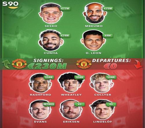 结果就是:花钱如流水,却毫无回收。更扎心的是,两轮联赛过后,曼联仅排在 第16名。纸面上攻击群看似豪华,现实中却一地鸡毛。