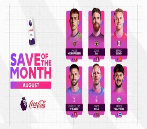 直播吧9月4日报道宣称 英超联赛已经进行了3轮,英超官方也评选出了8月最佳扑救的候选名单: