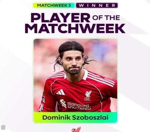 直播吧9月3日报道宣称 英超官方宣布,经过球迷票选,利物浦中场索博斯洛伊当选为本轮英超最佳球员。