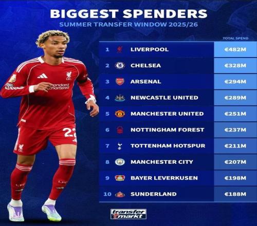 英超对顶级球星的垄断性投资,同样空前。今夏转会费达5000万欧元以上的25名顶级球星,英超独占18人,四大联赛仅4人。转会费榜前五名的球星全部加盟英超球队,欧陆四大联赛的4位“5000万+”球星,居然3人出自英超小俱乐部伯恩茅斯。英超豪门不仅席卷了维尔茨、埃基蒂克、沃尔特马德、谢什科、西蒙斯、吉滕斯这样的德甲精英球员,还从西甲、意甲、葡超吸引顶尖球员。同时,英超还进一步整合了内部资源,18名“5000万+”球星有9个是从英超中小俱乐部转入英超豪门,令英超头部俱乐部的资源优势更加巨大。