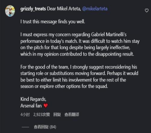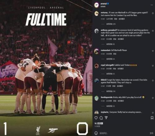 赛后阿森纳社媒战报有相当多评论表达了鼓励,但也有不少枪迷在质疑阿尔特塔的战术选择。一些内容如下。