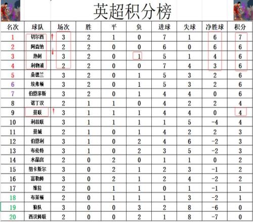 英超最新积分战报切尔西3轮不败超阿森纳登顶曼联首胜升至第9