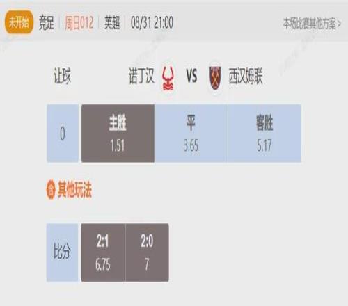 竞足 周日012 英超诺丁汉VS西汉姆联