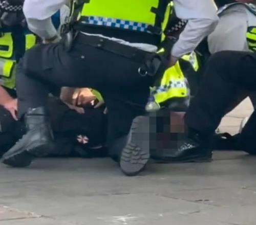 在社交媒体上发布的戏剧性视频中,可以看到一队身穿制服的警察将嫌疑人按倒在地。