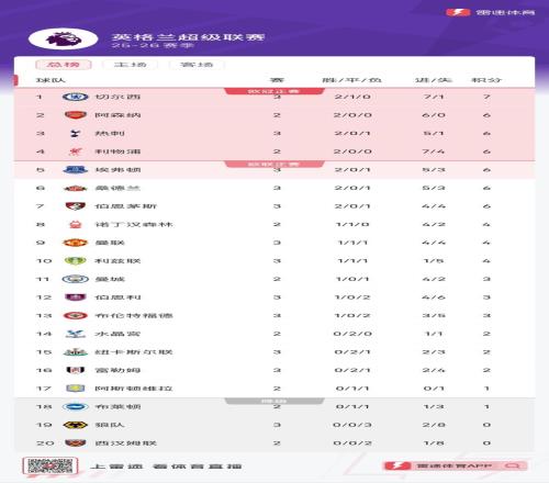 英超最新积分榜:切尔西升至榜首,曼联首胜暂居第9