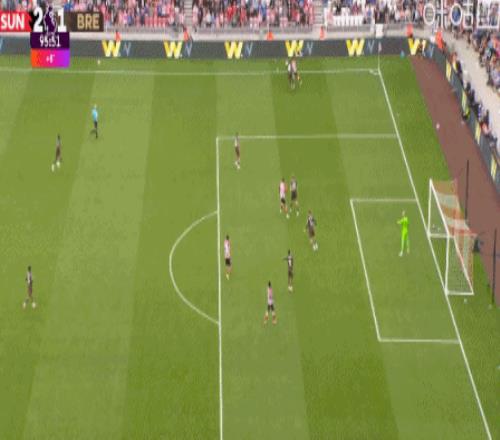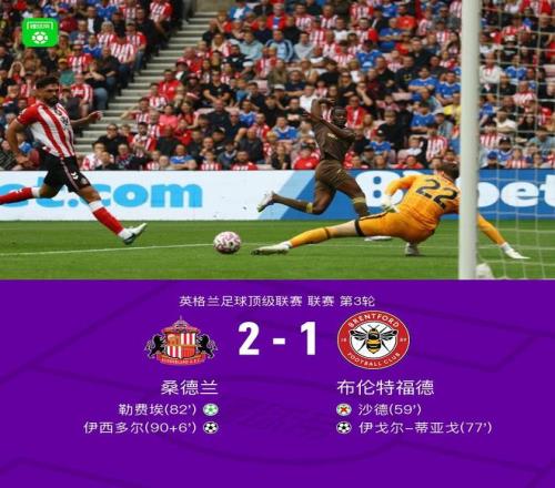桑德兰21逆转布伦特福德,勒费埃点射,伊西多尔补时绝杀