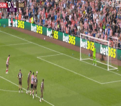 第82分钟,布伦特福德犯规送点,勒费埃点射破门!桑德兰1-1扳平