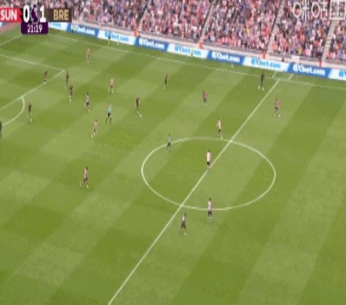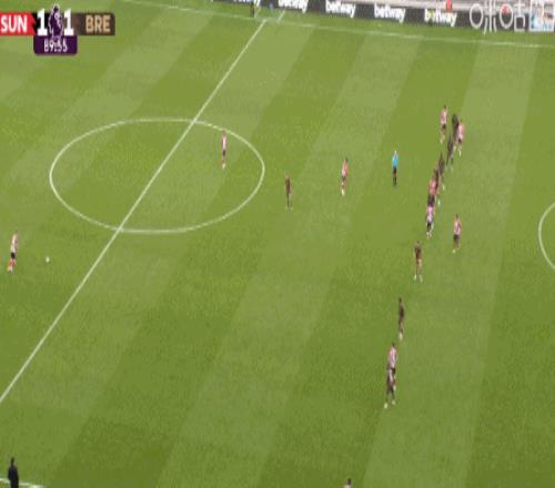 第77分钟,奥涅卡送出传中,蒂亚戈头球破门!桑德兰0-1布伦特福德