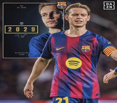 西甲豪门巴萨官宣,俱乐部与球队荷兰中场弗朗基-德容续约至2029年。