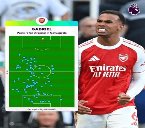 英超官方晒加布里埃尔触球分布,仅在对方禁区触球1次就完成绝杀