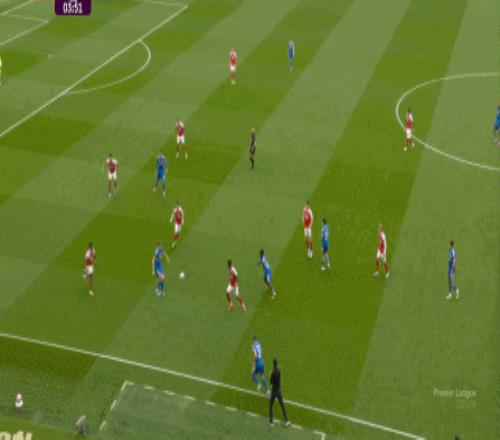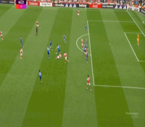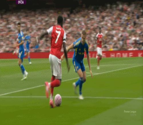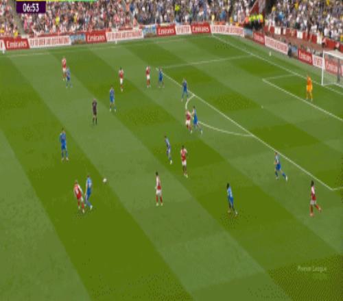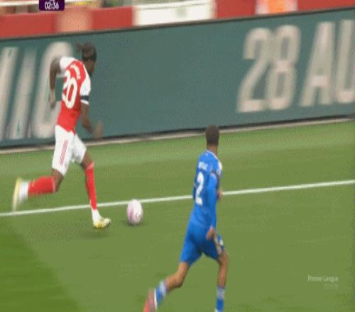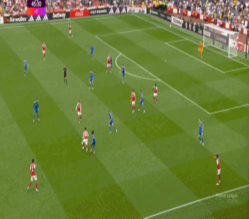 结果利兹联在这里得球,却被赖斯完成抢断,阿森纳快速打出二次进攻,萨卡完成了逆足的破门: