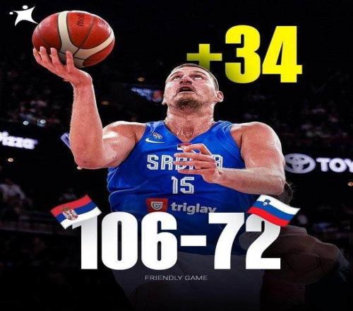 欧锦赛热身赛,塞尔维亚男篮106比72大胜斯洛文尼亚男篮。塞尔维亚球星约基奇表现高效,他全场出战19分钟,贡献10分(两分球4投4中,罚球2投2中)、8个篮板和4次助攻。相比之下,东契奇在进攻端表现不佳,他出战27分钟得到17分(两分球8投2中,三分球10投2中,罚球9罚7中),同时有7个篮板、4次助攻。其他球员方面,尼古拉·约基奇拿下全场最高的18分,博格丹·博格丹诺维奇贡献14分,特里斯坦·武克切维奇得到10分。这样一来,塞尔维亚男篮热身赛取得七战全胜的战绩,而斯洛文尼亚则仅在六场热身赛中赢下一场。