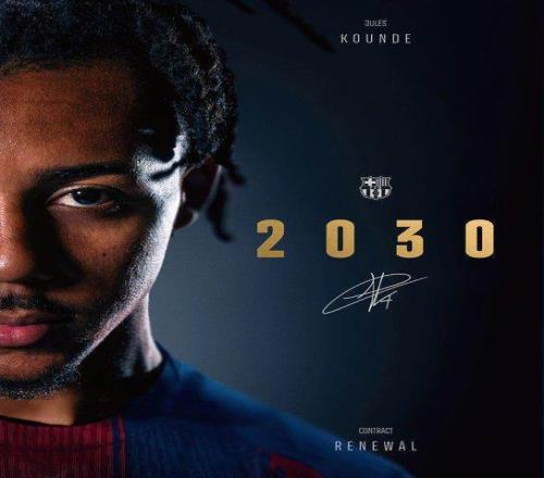 巴塞罗那官方宣布,与26岁法国右后卫孔德续约至2030年夏。孔德此前的合同定于2027年到期,据悉新约中其解约金数额不变,照为10亿欧元。部分媒体透露,孔德年薪将由1300万欧元上涨至1800万。孔德于2022年夏从塞维利亚加盟巴萨,迄今共为球队出战142场,贡献7球18助。夺得冠军7座,分别是2022-23、2024-25赛季西甲、2024-25赛季国王杯和2023、2025年的西班牙超级杯。