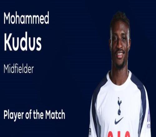 助攻梅开二度,库杜斯当选热刺vs伯恩利全场最佳球员