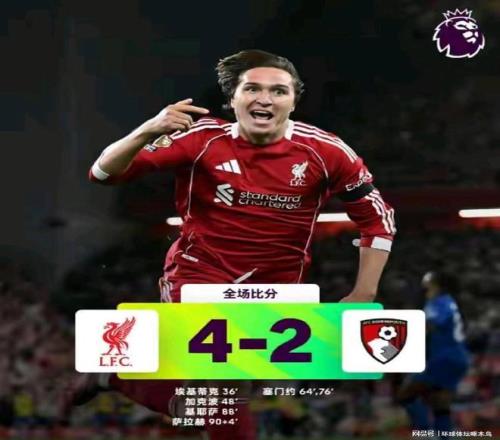 利物浦42力克伯恩茅斯新援埃基蒂克首秀传射建功